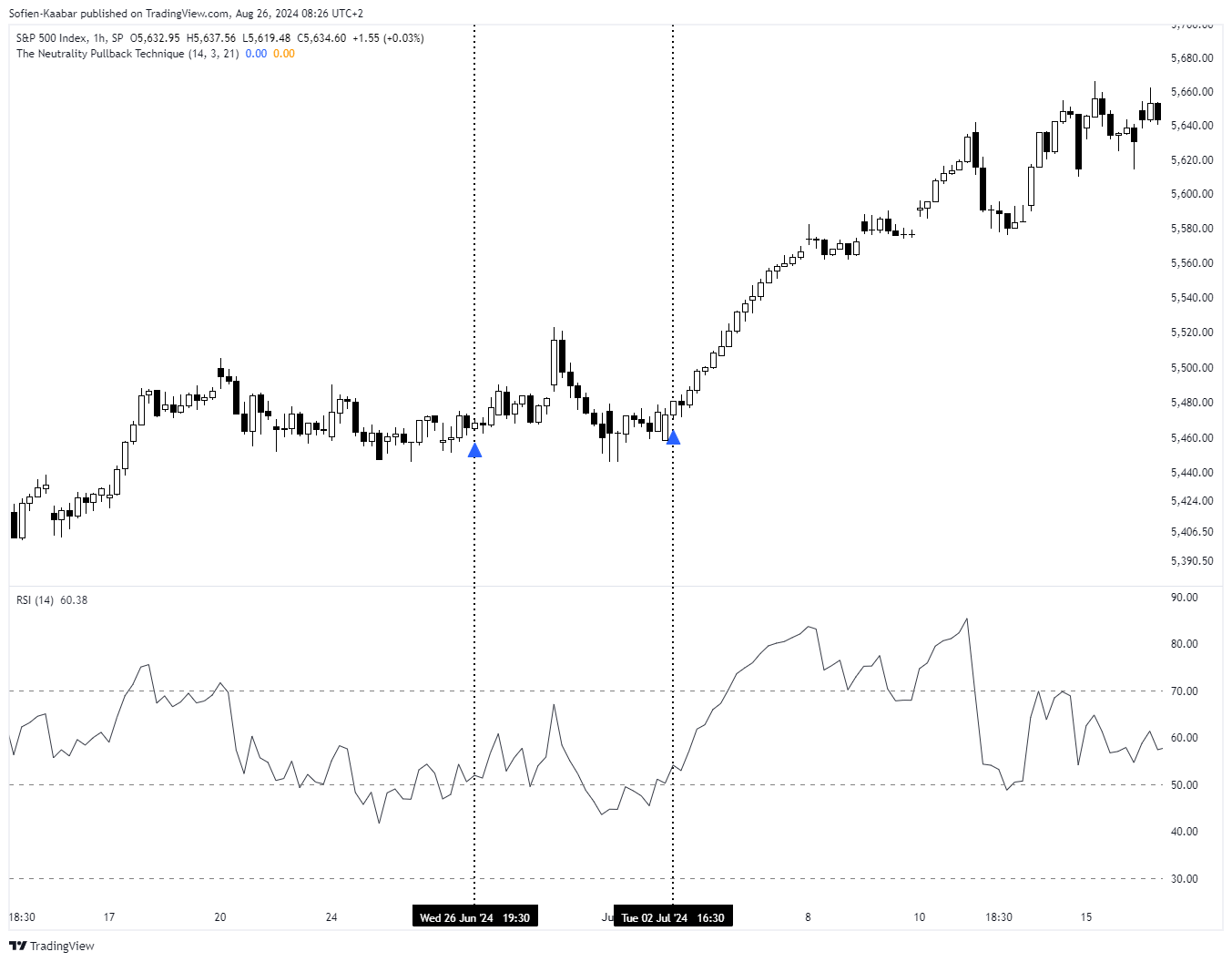 The RSI neutrality pull-back can also be used in tandem with the real price action pull-back technique which is where the market price exits a range, then re-tests its limit before continuing in the initial breakout direction.
