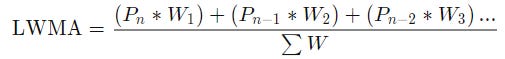 Also referred to as a weighted moving average, the linear-weighted moving average is a simple moving average that places more weight on recent data. The most recent observation has the biggest weight and each one prior to it has a progressively decreasing weight.