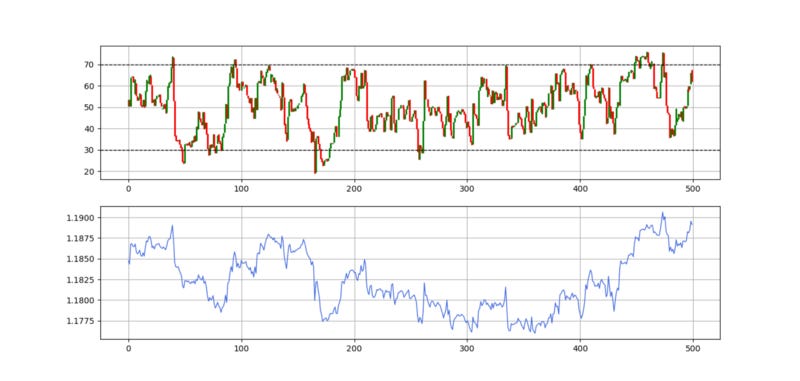 Candlestick charting does not have to be limited to price data. What if it can be used on technical indicators so that start testing some new pattern recognition techniques? In this article, the RSI is looked at from the perspective of a simple candlestick chart where trading signals are derived. The basic idea is to start thinking about finding a robust strategy that uses the technique of applying candlesticks to technical indicators in order to find either hidden patterns or trend reversal confirmation signals.