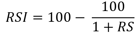 The RSI is calculated using a rather simple way. We first start by taking price differences of one period. This means that we have to subtract every closing price from the one before it. Then, we will calculate the smoothed average of the positive differences and divide it by the smoothed average of the negative differences. The last calculation gives us the Relative Strength which is then used in the RSI formula to be transformed into a measure between 0 and 100.