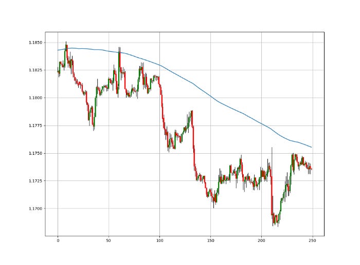 return DataThe below states that the moving average function will be called on the array named my_data for a lookback period of 200, on the column indexed at 3 (closing prices in an OHLC array). The moving average values will then be put in the column indexed at 4 which is the one we have added using the adder function.