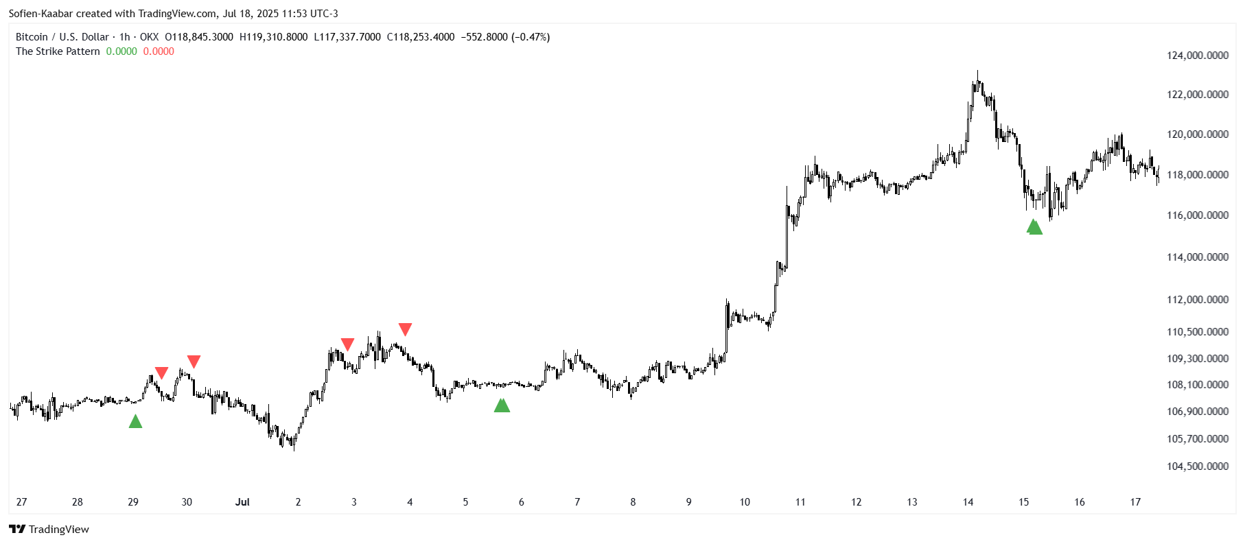 Some patterns are purely based on price and others are based on a combination of pricie and price-derived indicators. The Strike pattern is the latter. Let’s see how.