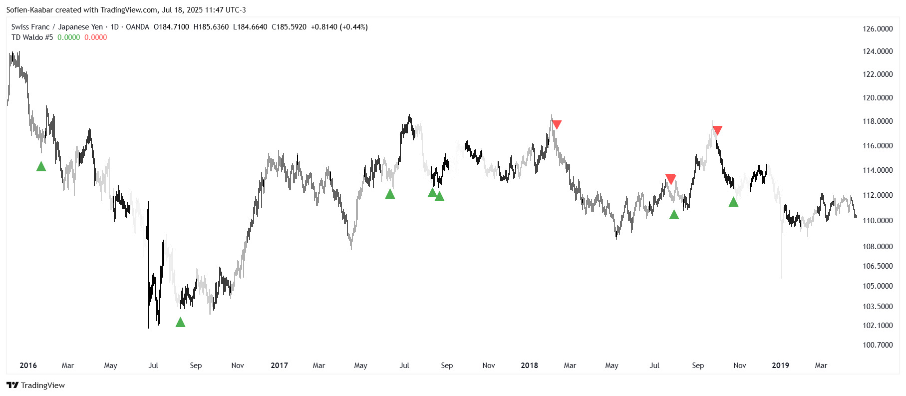 The previous chart shows a signal chart with a few market patterns detected. Take a look at the following chart as well.